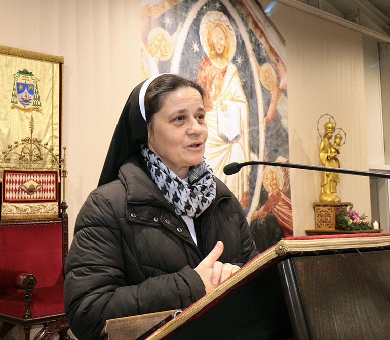 U svojem pozdravu ravnateljica s. Jelena Lončar zahvalila je sudionicima obnove, na odazivu te naglasila da je u ovom užurbanom vremenu i karitativcima važno zastati, poslušati Riječ Božju, osluškivati nova nadahnuća i otvoriti srce za otajstvo Božića. Sve je posebno potaknula da uvijek djeluju dobro i plemenito, pa i kada nisu na radnom mjestu, imajući na pameti da kroz zaposlenike i volontere Caritasa drugi ljudi gledaju i Caritas i Crkvu.