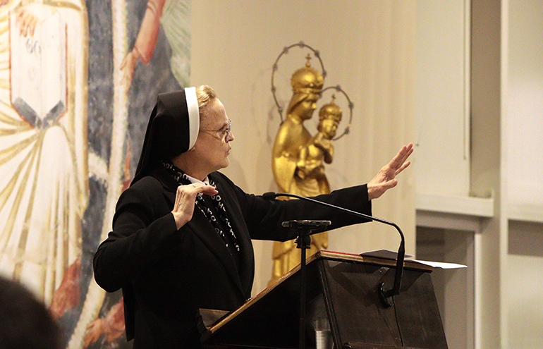 Bogoslužni prostor bl. Alojzija Stepinca na zagrebačkom Kaptolu, 13. prosinca prijepodne, odisao je radošću "zajedništva ljudi koji utjelovljuju nadu i Crkvu budućnosti, pokretnu Crkvu oslobođenu strahova i umora, oslonjenu na Riječ Božju i osjetljivu na potrebe ljudi našega vremena", kako je to u svojem duhovnom nagovoru opisala članica Družbe sestara Kćeri Božje ljubavi prof. dr. sc. s. Nela Gašpar s Katedre dogmatske teologije na Katoličkom bogoslovnom fakultetu Sveučilišta u Zagrebu. Za nju je Caritas zajedništvo, štoviše "utjelovljenje bratstva utemeljenog na sinovstvu" i na zajedničkom poslanju/služenju "drugima u potrebi", koje utjelovljuje temeljnu stvarnost "hodočasnika nade", nade koja ne razočarava i koja i u ovoj Jubilarnoj godini svjedoči o sposobnosti nade za ići naprijed.