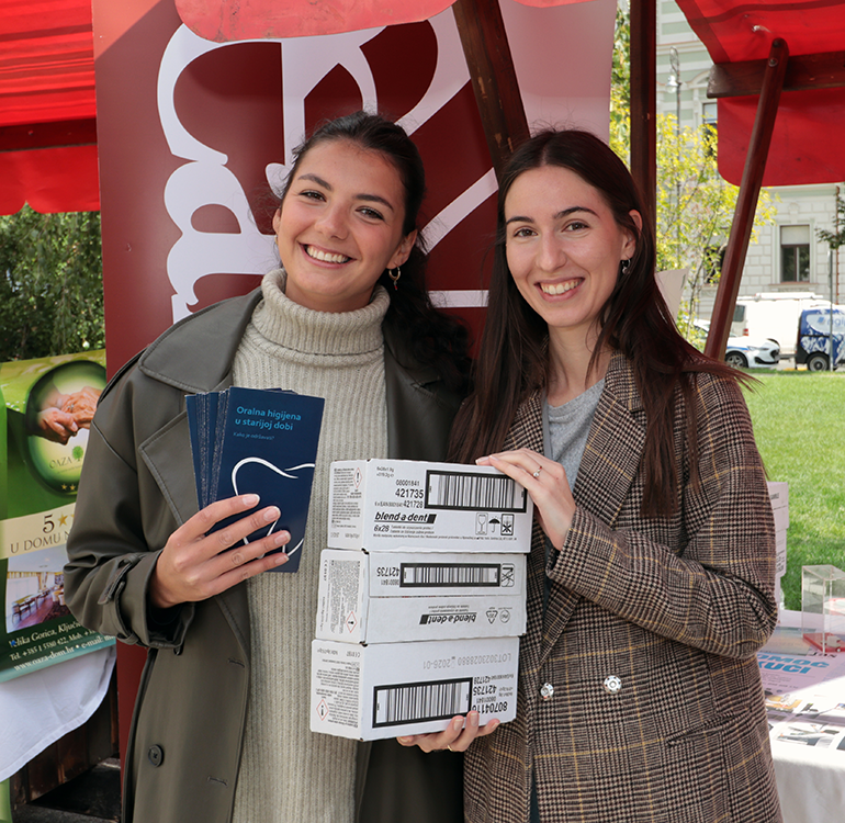 Caritas Zagrebačne nadbiskupije zahvaljuje Udruzi studenata dentalne medicine (USDM) Stomatološkog fakulteta Sveučilišta u Zagrebu, koja je tijekom programa Gerontološkog tuluma, a u okviru svojega Geronto projekta, darovala za potrebe starijih Caritasovih korisnika trideset i šest (36) kutija tableta "Blend-a-dent" za čišćenje zubnih proteza. Donaciju je uručila studentica Marija, voditeljica Projekta, a preuzela ju je zaposlenica Caritasa gđa Ivana Gudelj, socijalna radnica.