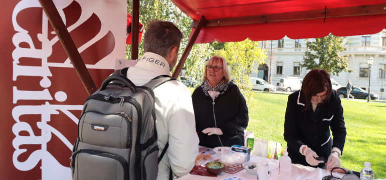 Zaposlenice zagrebačkog Caritasa na štandu su građane upoznale s raznim oblicima pomoći koje Caritas pruža starijim osobama - materijalnu, novčanu, savjetodavnu, psihološku, pomoć kroz posudbu ortopedskih, invalidskih i medicinskih pomagala te pomoć kroz Zagrepčanima dobro poznatu Uslugu "Pomoć u kući", čiji je kapacitet trenutno popunjen.