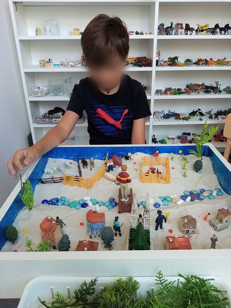 Djeci se siguran prostor za izražavanje može osigurati i kroz terapiju igrom u pijesku, koja omogućava unutarnje iscjeljenje. Pijesak je poput papira za crtež, samo što omogućuje trodimenzionalno izražavanje, stoga kada dijete gradi, zakopava ili stvara priče u pijesku, ono zapravo izražava svoje osjećaje i misli koje ne zna ili ne može izreći riječima. Pijesak i figurice služe mu kao ‘simbolički jezik’ kojim pokazuje što nosi u sebi. Dijete nesvjesno ‘iznosi van’ svoje brige, strahove, ali i želje i snove. Kroz igru u sigurnom prostoru, uz terapeuta, dijete dobiva priliku proraditi teškoće, stvoriti osjećaj kontrole i pronaći nove načine nošenja s emocijama. Ukratko, dijete se oslobađa napetosti na zdrav način, što postupno vodi do smirenijeg ponašanja, većeg samopouzdanja i boljih odnosa kod kuće i u školi.