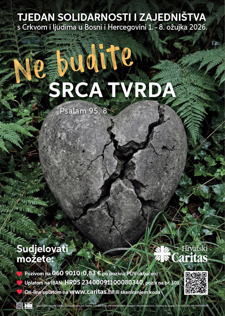 Tjedan solidarnosti i zajedništva s Crkvom i ljudima u Bosni i Hercegovini obilježava se od 1. do 8. ožujka, a Hrvatski Caritas, odlukom Hrvatske biskupske konferencije, već 19 godina provodi taj program s ciljem „da se vjerničkoj i općoj javnosti u Republici Hrvatskoj osvijesti što nas sve s Crkvom i Hrvatima u Bosni i Hercegovini veže“, izvijestio je Hrvatski Caritas.
